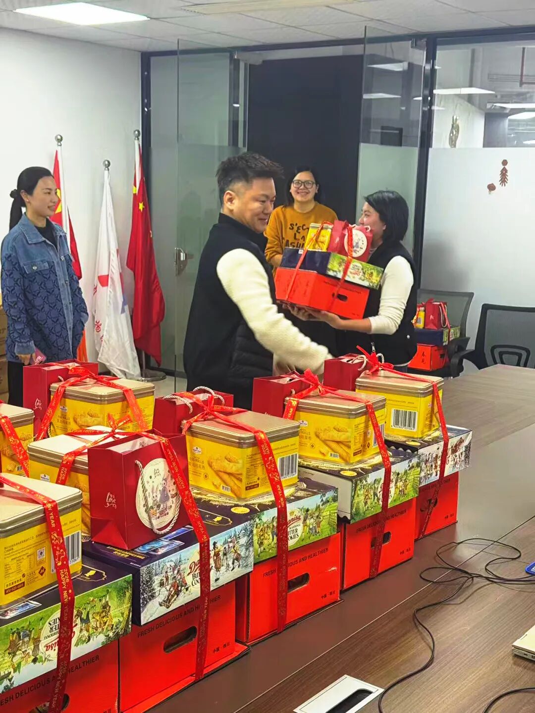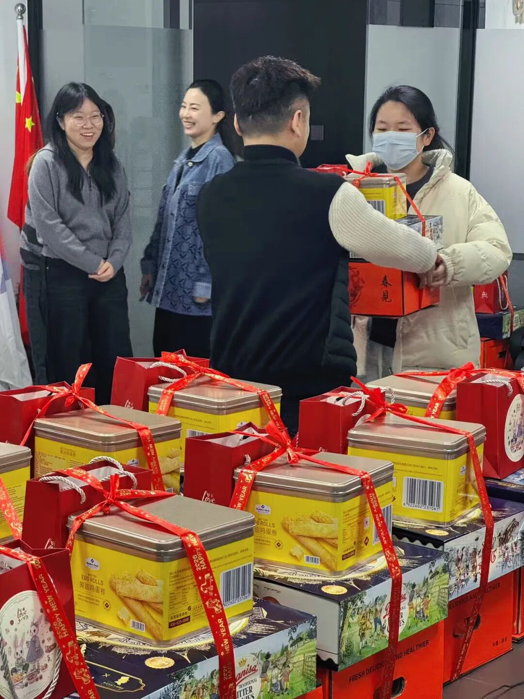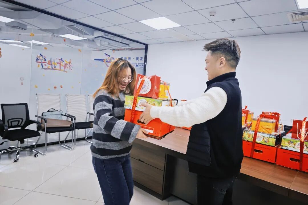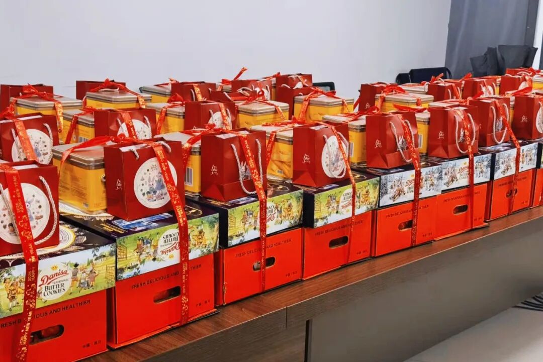 发放现场,一箱箱满载着公司关爱与新春祝福的年货整齐摆放、琳琅满目,浓浓年味扑面而来。现场,欢声笑语此起彼伏,大家手捧着沉甸甸的新春福利,喜悦之情溢于言表,脸上绽放出幸福灿烂的笑容,真切感受到了公司大家庭的暖心情意。
