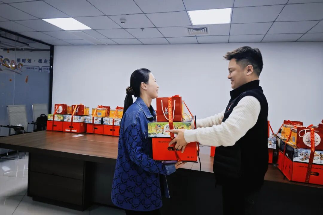 新春将至,年味渐浓。2 月 10 日,左海物流为全体员工送上精心筹备的春节福利,并致以诚挚的新春祝福。活动现场暖意融融,处处洋溢着喜庆温馨的团圆氛围。精美大气的礼包既饱含传统节日的浓郁年味,又兼顾健康美味与贴心关怀,每一份福利都满载着公司对员工的深情厚意与真切关怀。