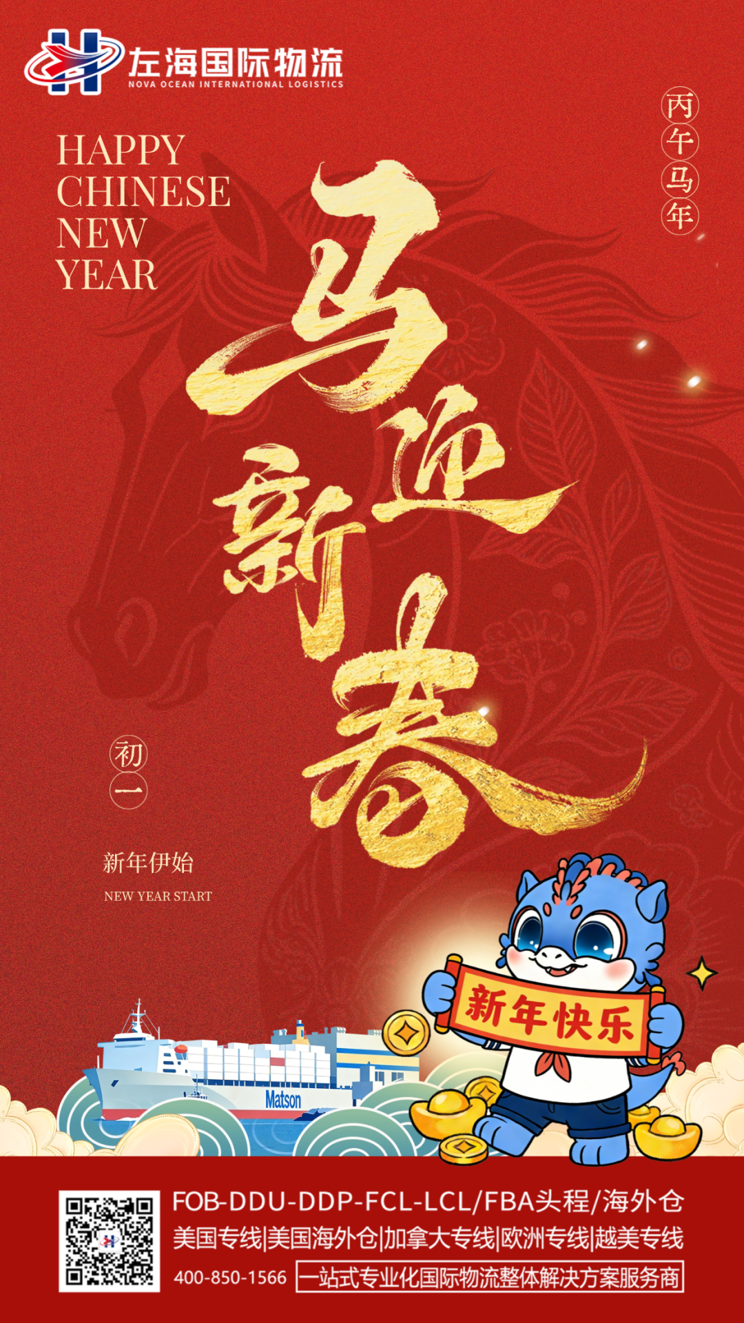 金马迎新春 共谱新华章|左海国际物流给您拜年啦,恭祝:新春快乐 马年大吉!