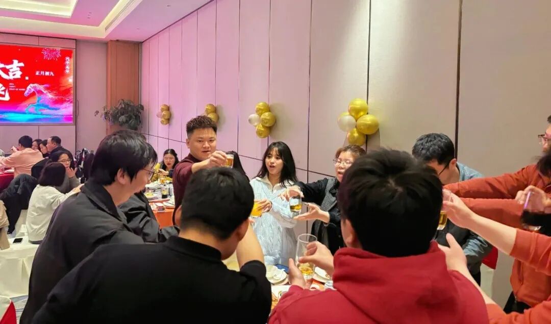晚宴伊始,福建左海物流总经理邱总登台举杯,向全体员工致以最诚挚的祝福:“祝愿各位家人马年大吉、身体健康、阖家幸福、万事顺意!新的一年,愿我们继续同心同德、携手共进,以龙马精神之姿,共赴新程、共创佳绩!” 话音落下,大家共同举杯,碰杯声、欢呼声交织在一起,暖意与温情在席间蔓延。